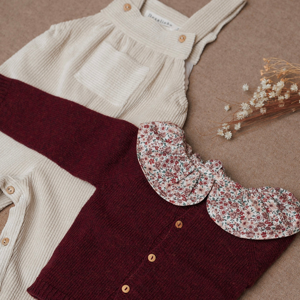 Jardineiras com abertura entre pernas nos tamanhos 3/6 m e 6/12m
