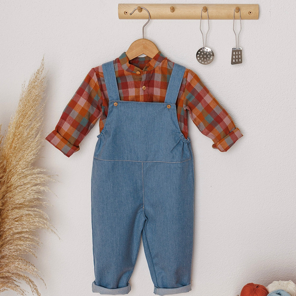 Look Jardineiras Ganga c/ camisa Bolo de cenoura